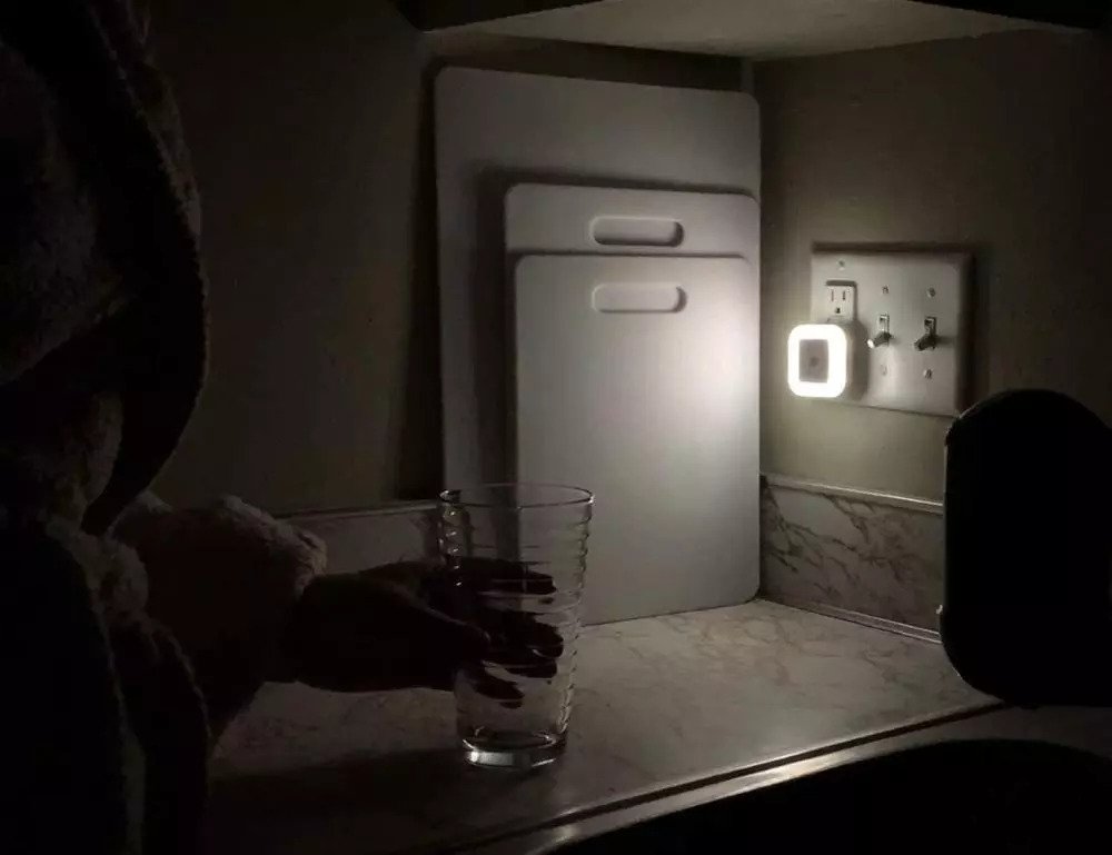 • COMPACT & LIGHT WEIGHT: Offers a modern square design that is small for easy placement in any location in your home. This smart bright night light plugs into in any outlet and allows the second outlet free for other devices.